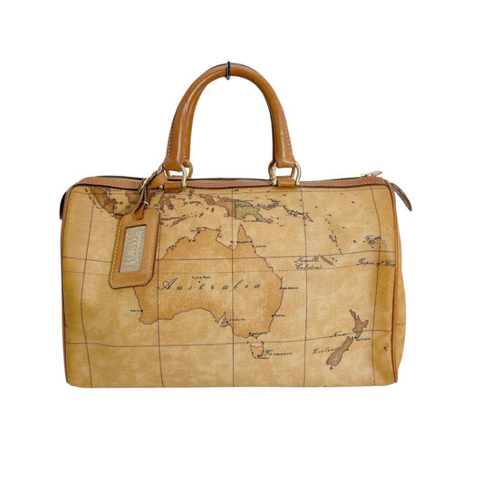 プリマクラッセ PRIMA CLASSE ボストンバッグ ミニボストン ハンドバッグ 地図柄 PVCコーティングキャンバス ブラウン 【SS】 【中古】