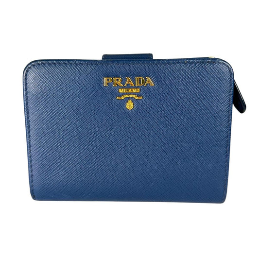 プラダ PRADA 二つ折り財布 二つ折り財布 ジップアラウンド サフィアーノ レザー 1ML018 ブルー 【SS】 【中古】