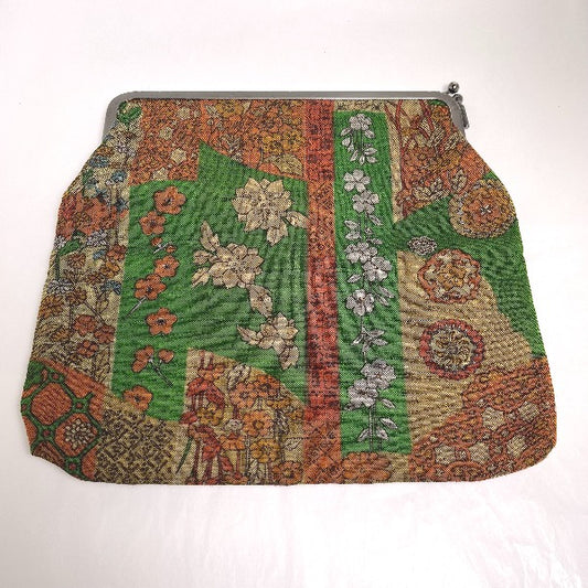 ポーチ 和装用 がま口 グリーン×オレンジ 【SS】 【中古】