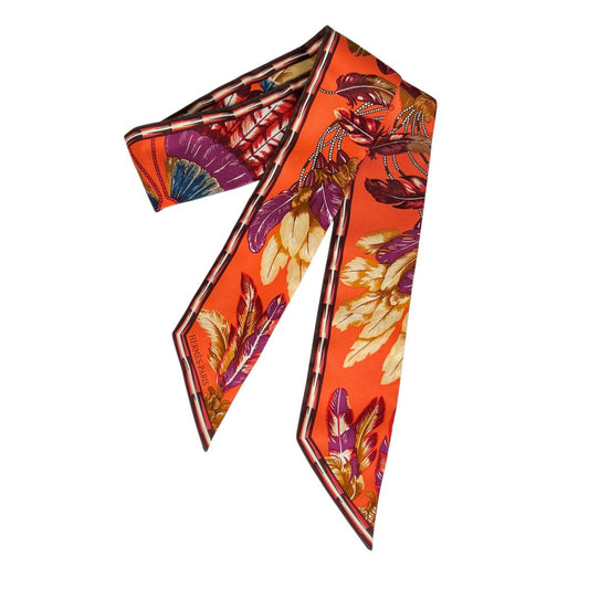 エルメス HERMES スカーフ リボンスカーフ 羽根 ツイリー シルク オレンジ 【SS】 【中古】