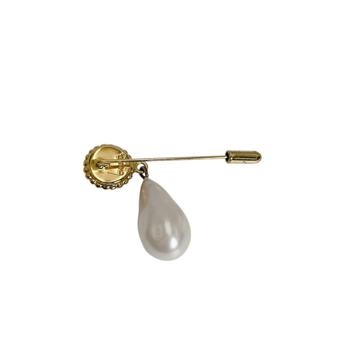 シャネル CHANEL ブローチ ピンブローチ クローバー ドロップパール GP ゴールド 【SS】 【中古】