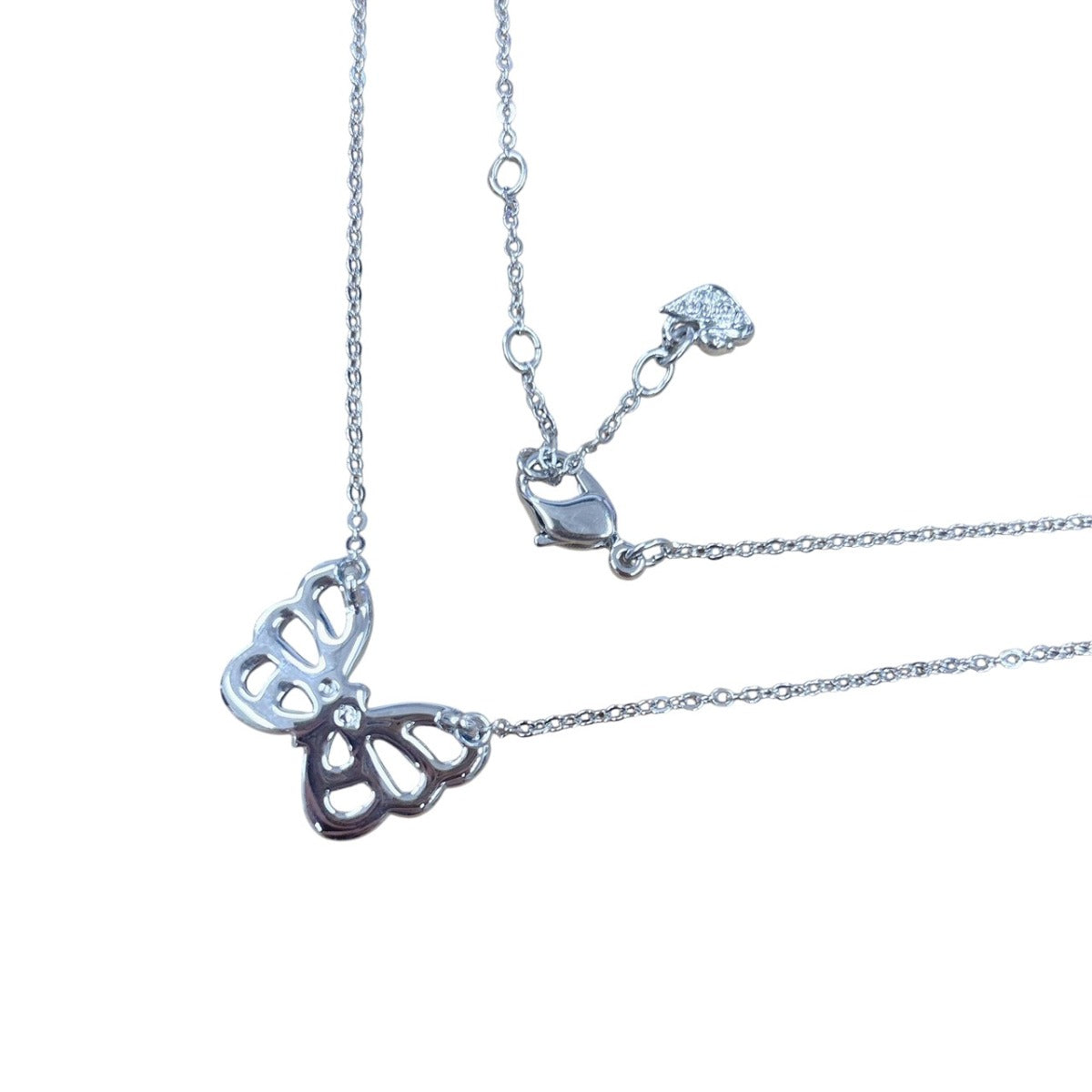 ネックレス ラインストーン 蝶々 レディース シルバー |