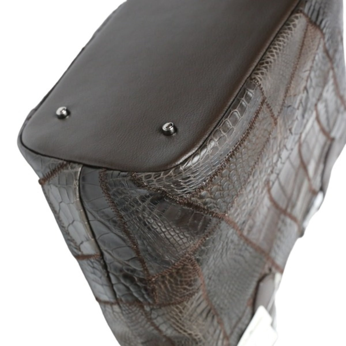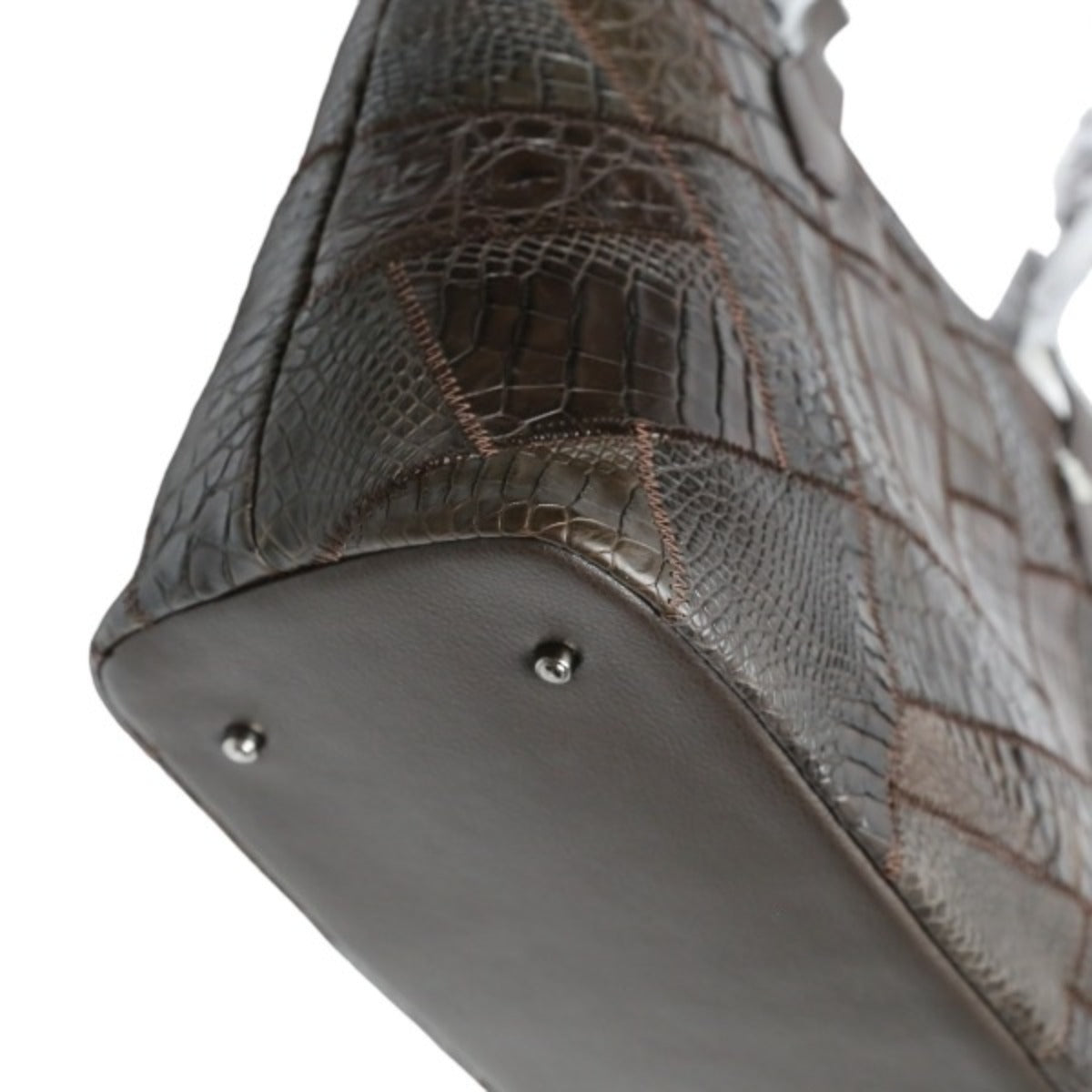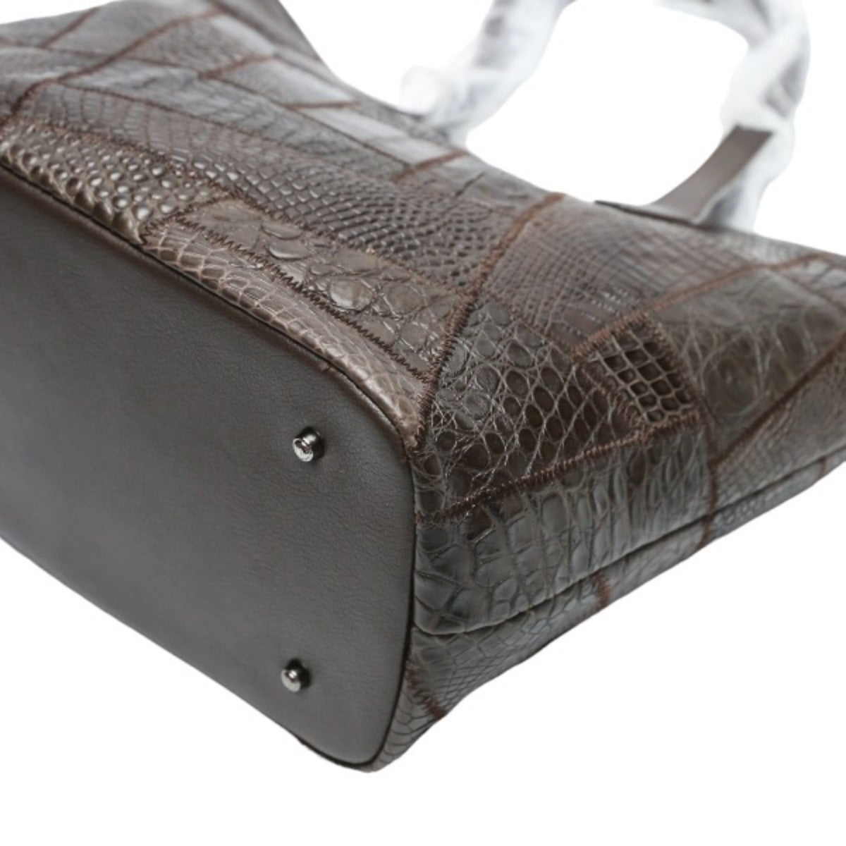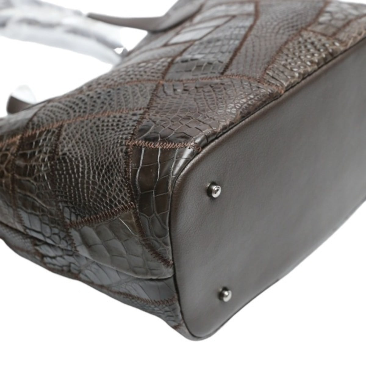 クロコダイル CROCODILE トートバッグ ショルダーバッグ ブラウン パッチワーク 天ファスナー クロコダイル LB-7001 ニコチン 【H】
