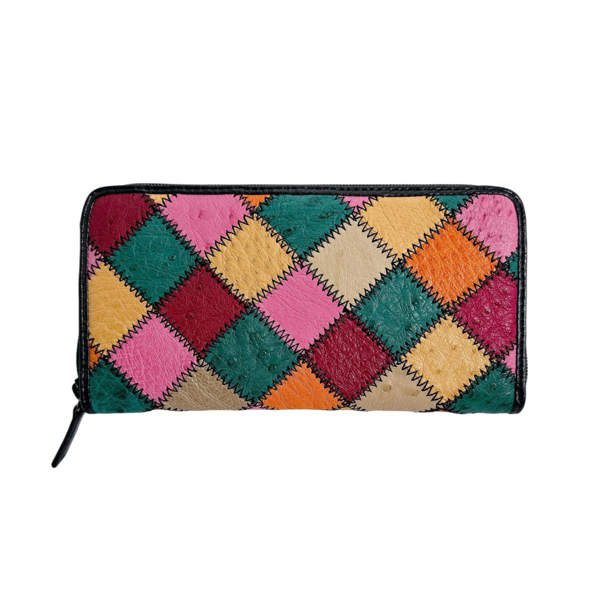 オーストリッチ ostrich 長財布 パッチワーク ラウンドファスナー マルチカラー オーストリッチ LB-5055 マルチカラー 【H】