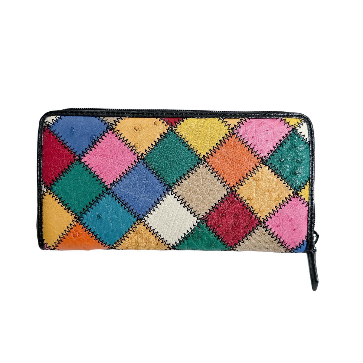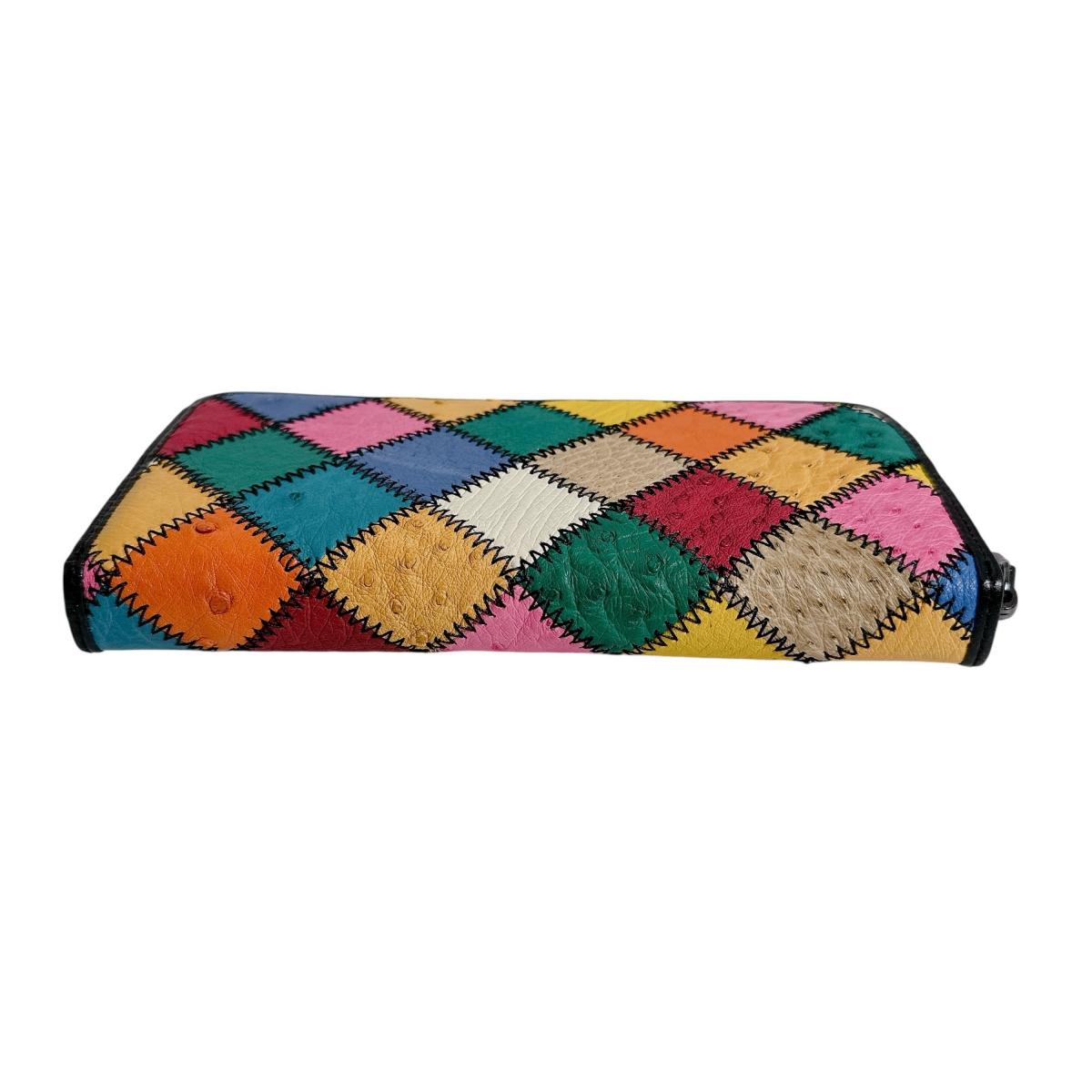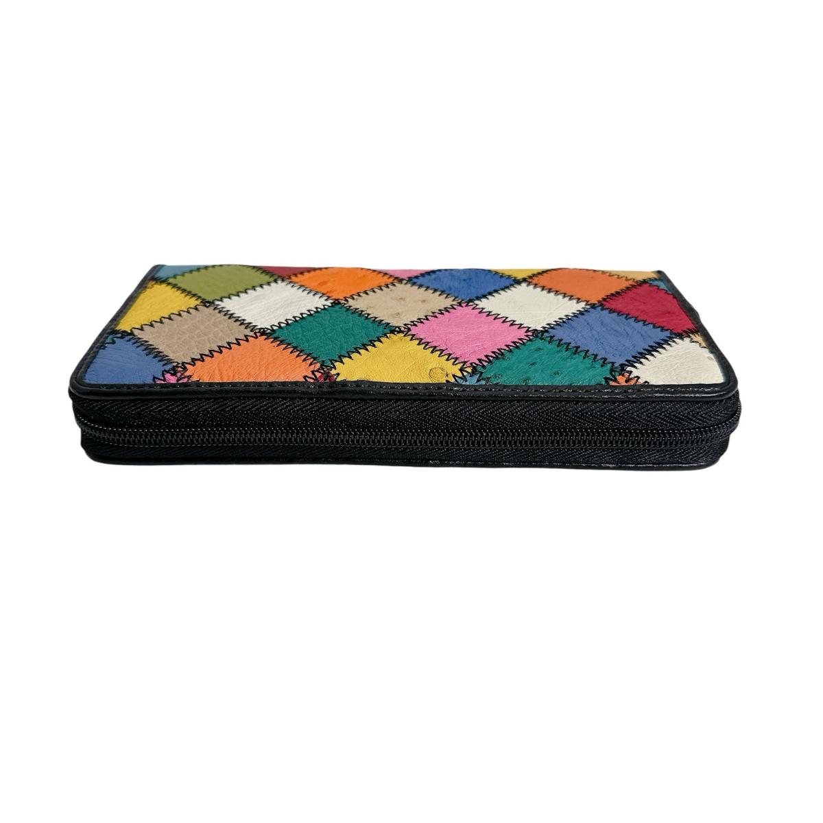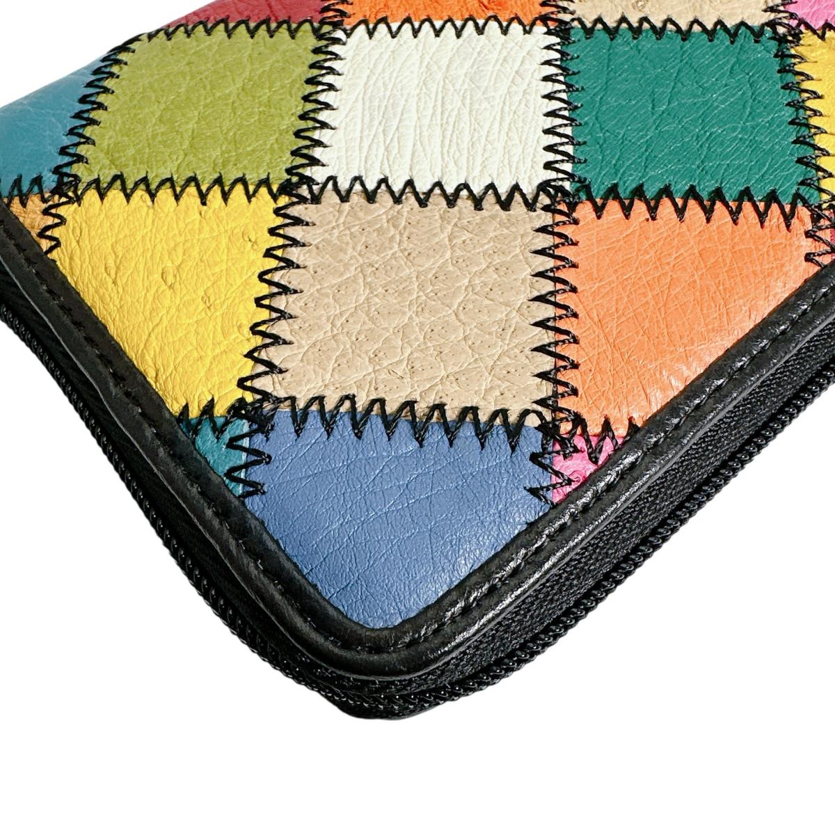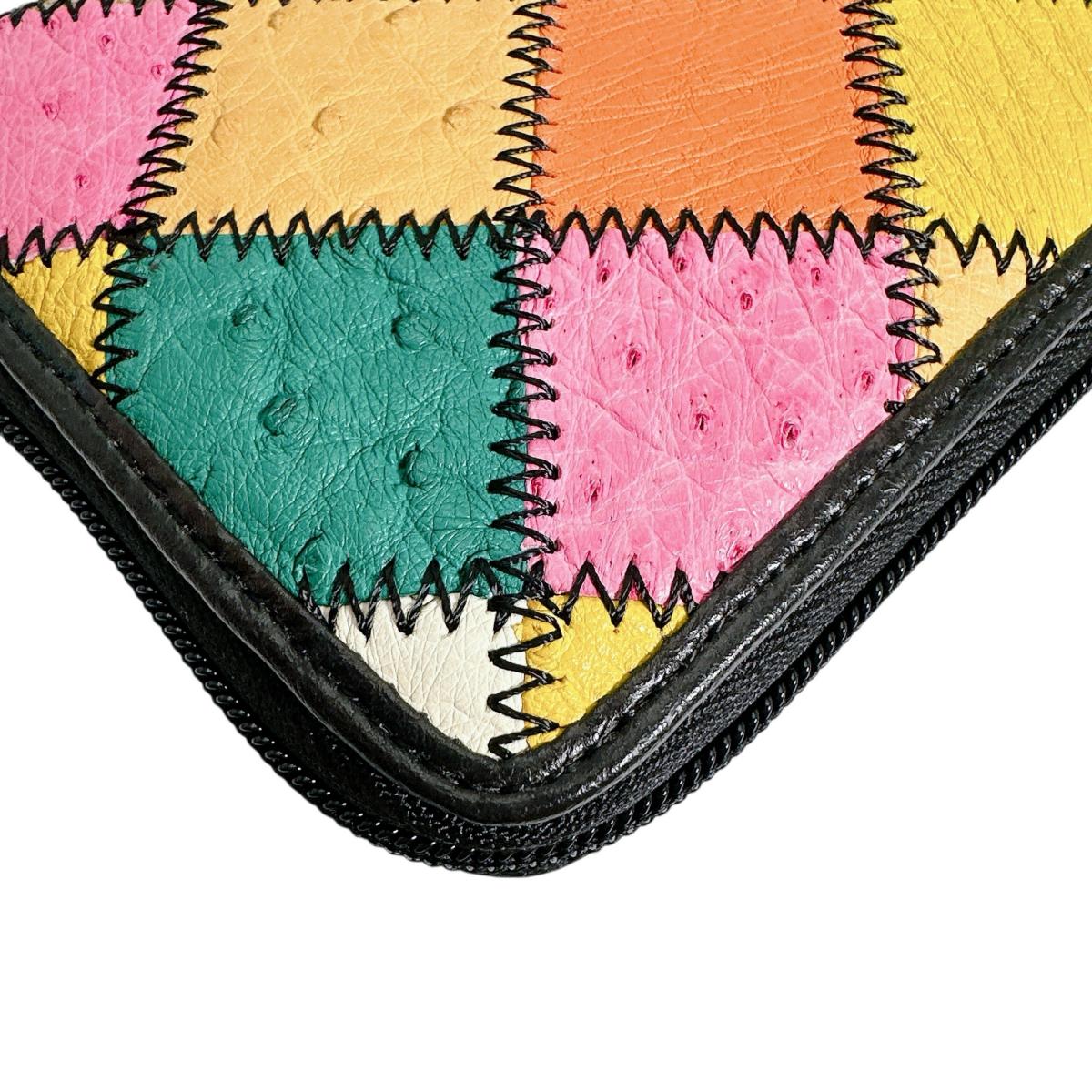 オーストリッチ ostrich 長財布 ラウンドファスナー 黒ステッチ パッチワーク オーストリッチ LB-5055 マルチカラー 【SS】