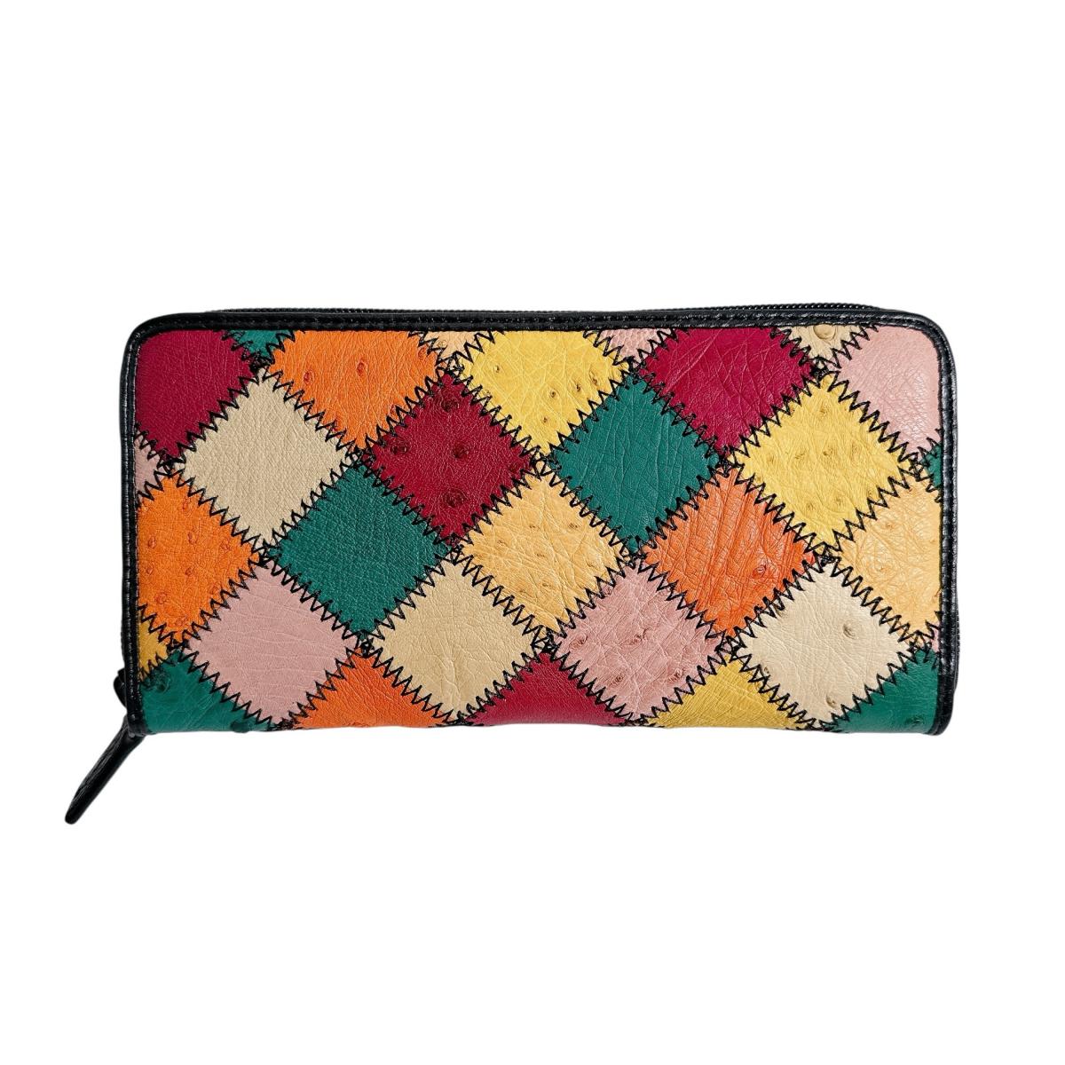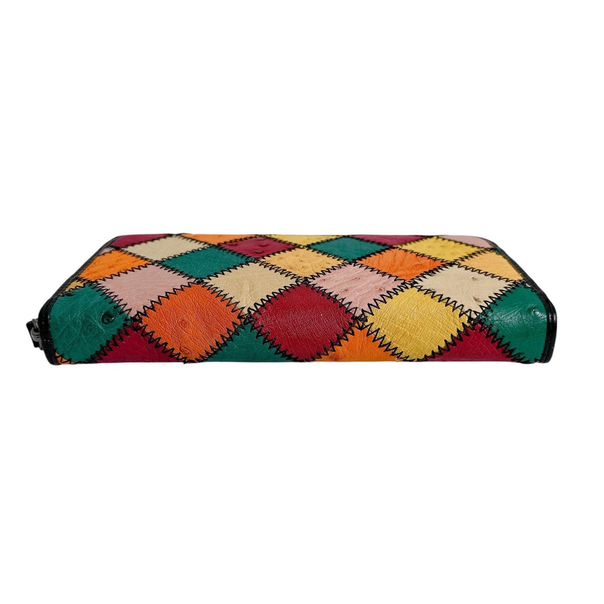 オーストリッチ ostrich 長財布 パッチワーク ラウンドファスナー マルチカラー オーストリッチ LB-5055 マルチカラー 【H】