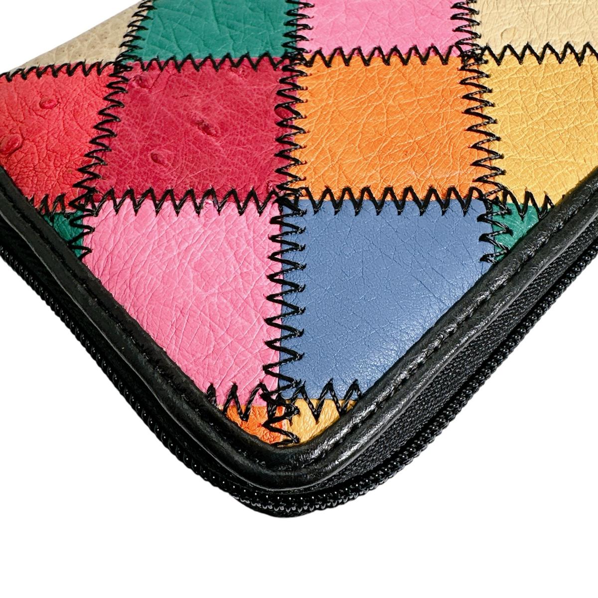 オーストリッチ ostrich 長財布 パッチワーク ラウンドファスナー マルチカラー オーストリッチ LB-5055 マルチカラー