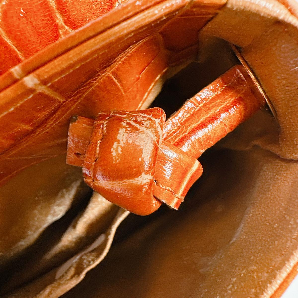 ショルダーバッグ クロコ型押 レディース オレンジ |