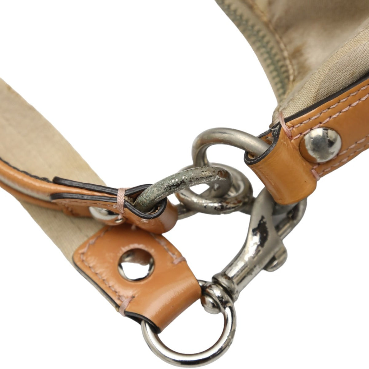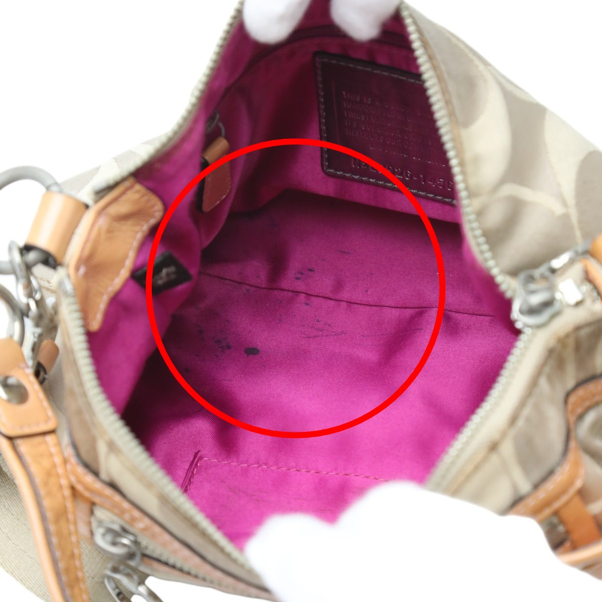 ランク:B 内側:汚れ 金具部分:キズ、スレ、剥がれ、退色 内側に汚れあり(画像19枚目参照) 金具部分に傷やスレ、剥がれあり(画像14.17.18枚目参照) ショルダーストラップにヨレや汚れあり(画像15.16枚目参照) |