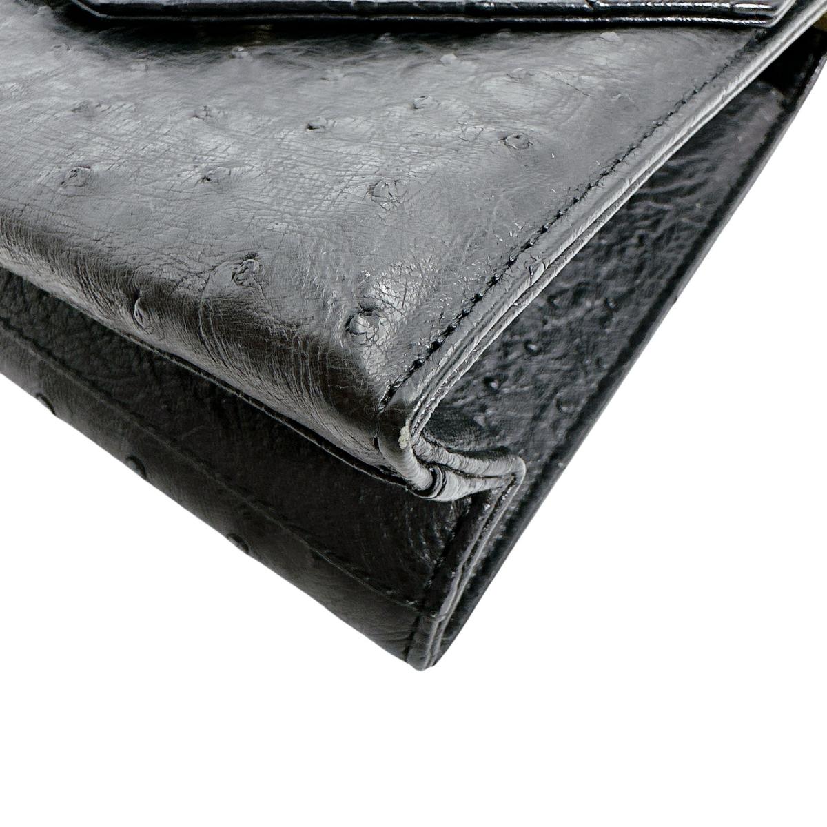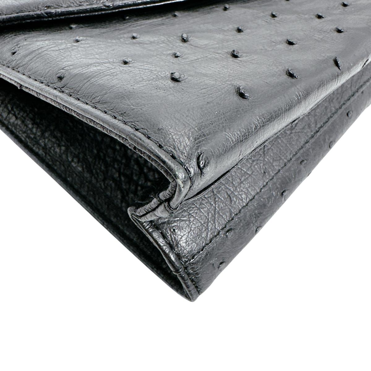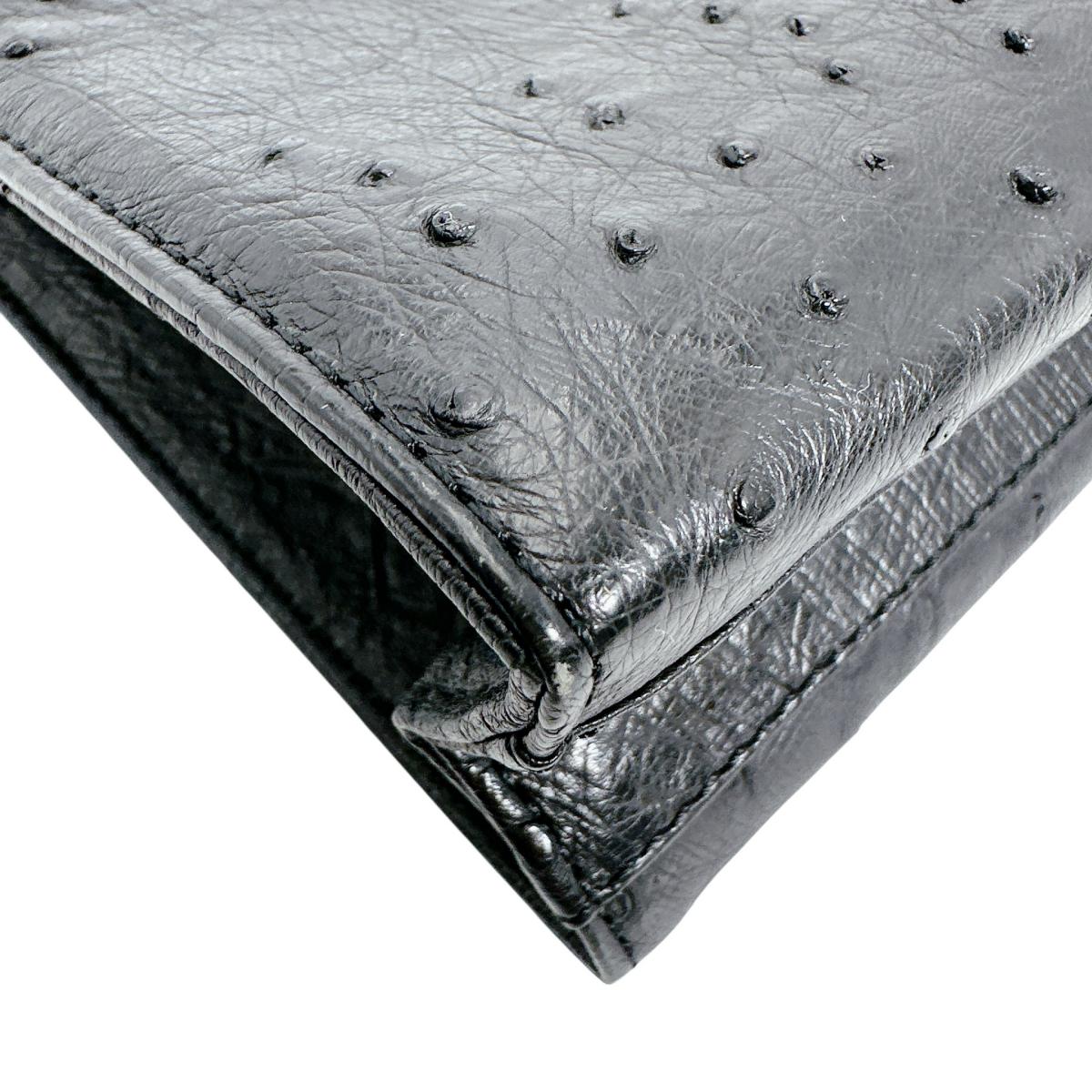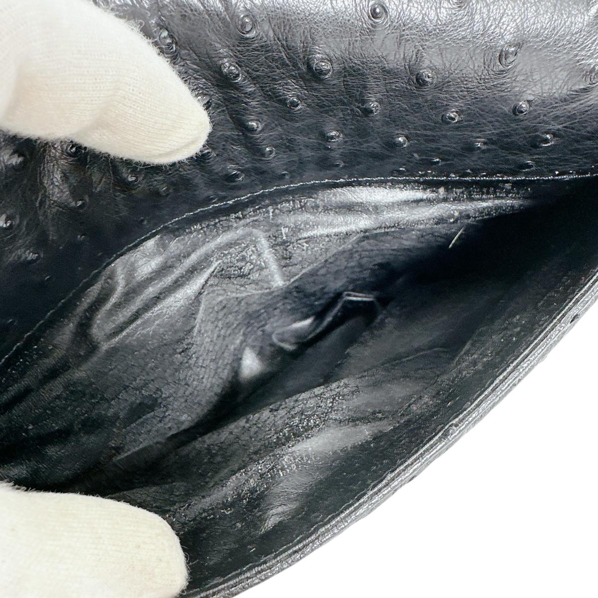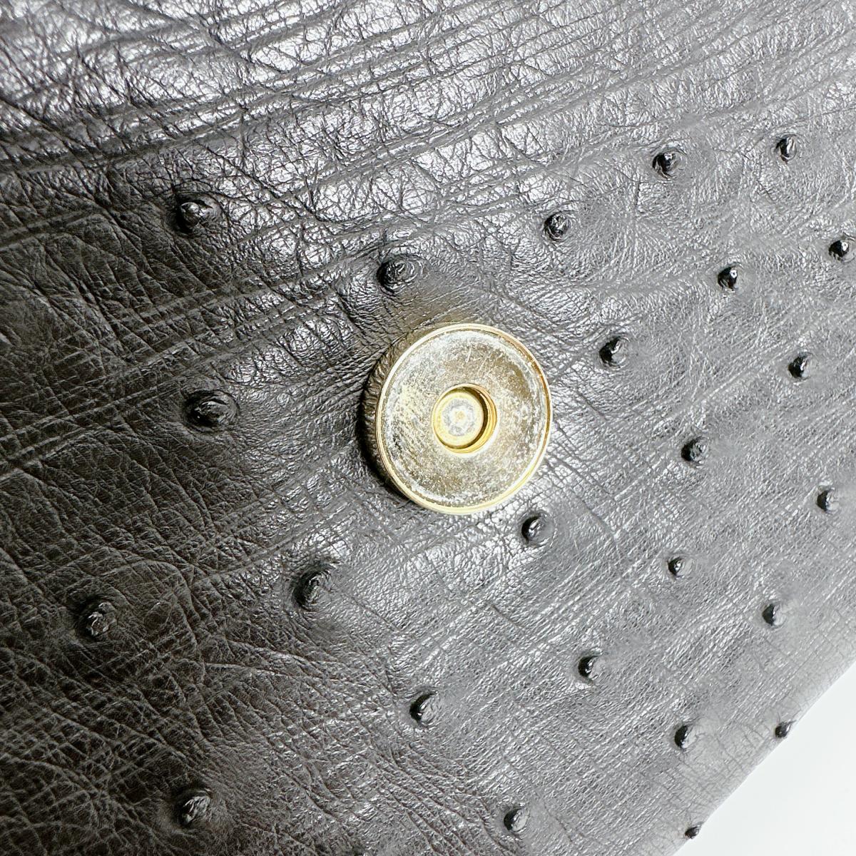 オーストリッチ ostrich ハンドバッグ フルポイント クラッチバッグ 一本手 ゴールド金具 オーストリッチ ブラック 【SS】 【中古】