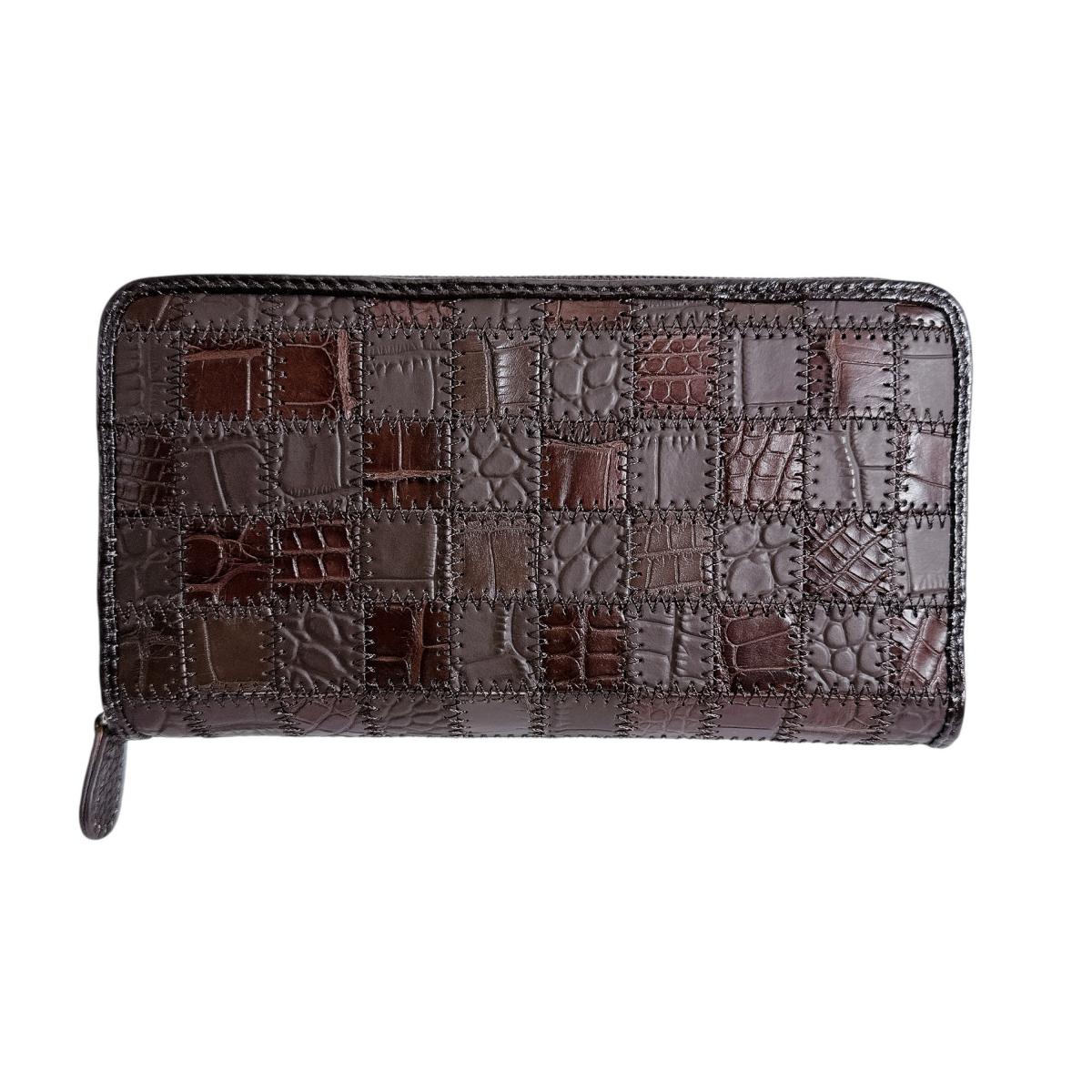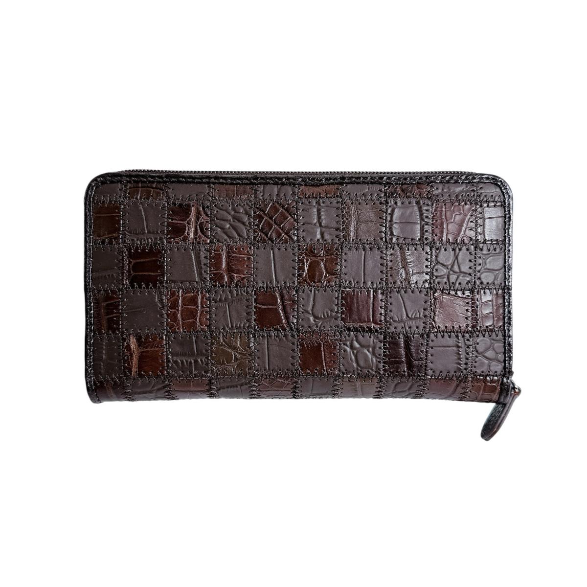 ラウンドファスナー長財布 ワニ革 パッチワーク ユニセックス S-541 ブラウン |