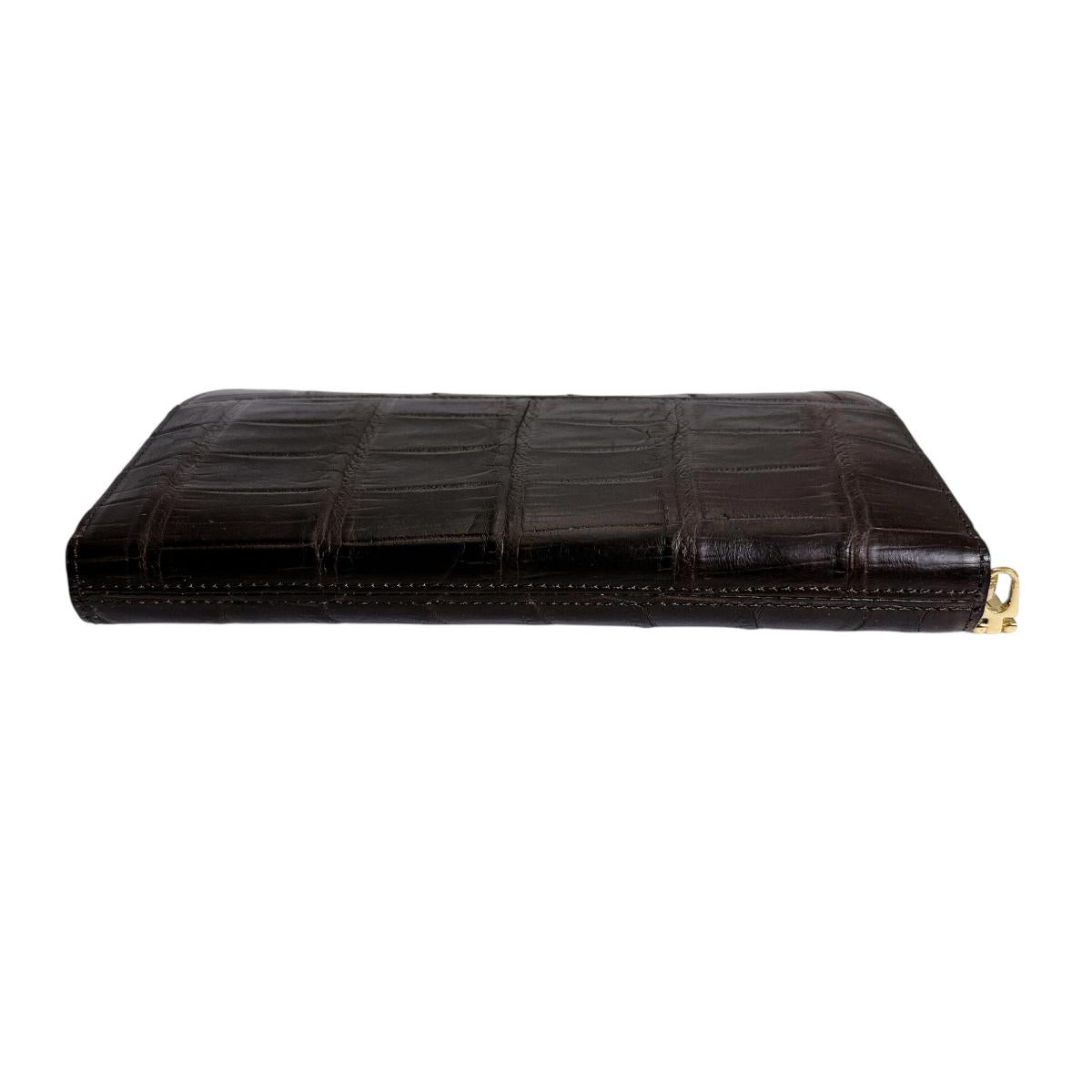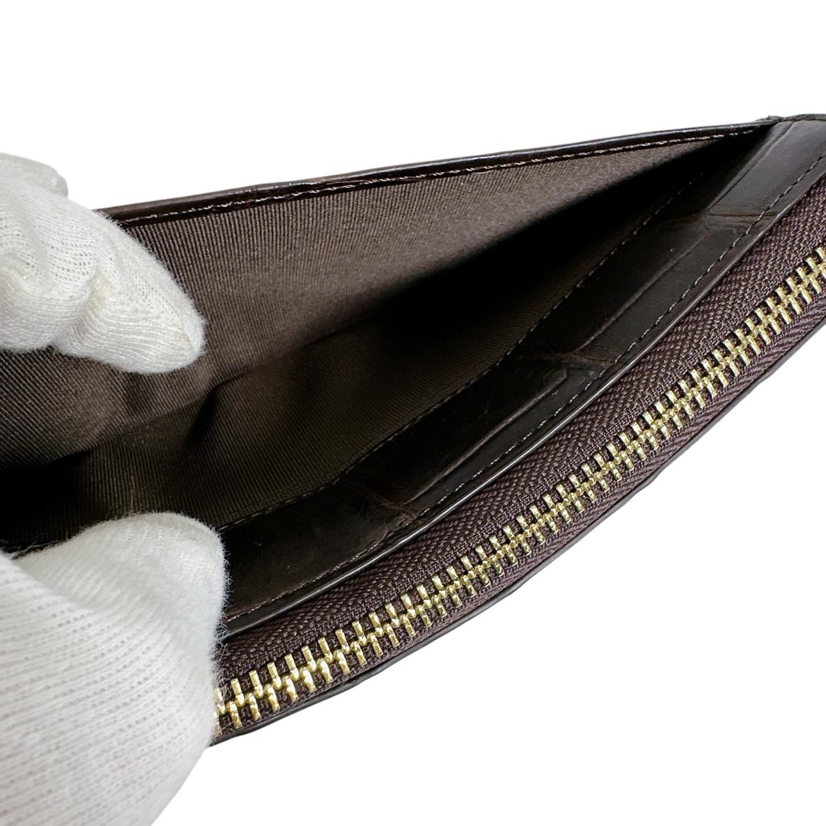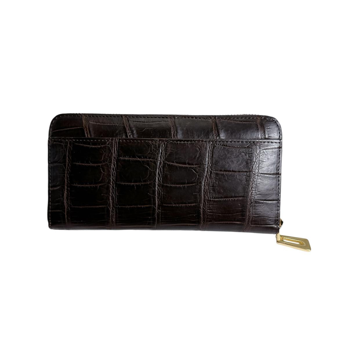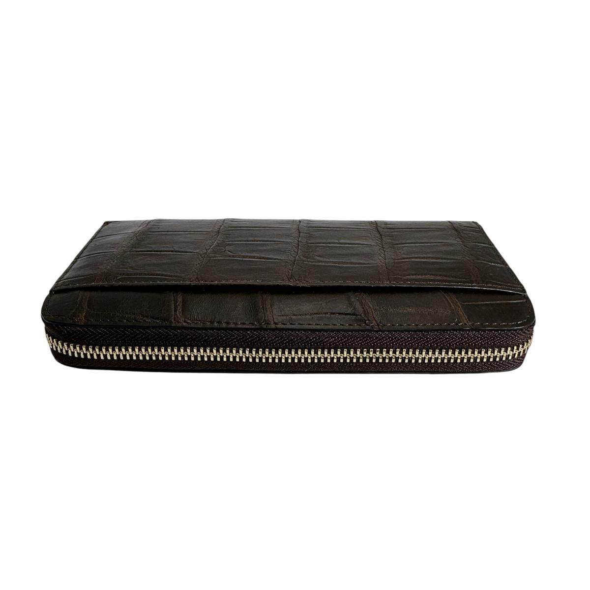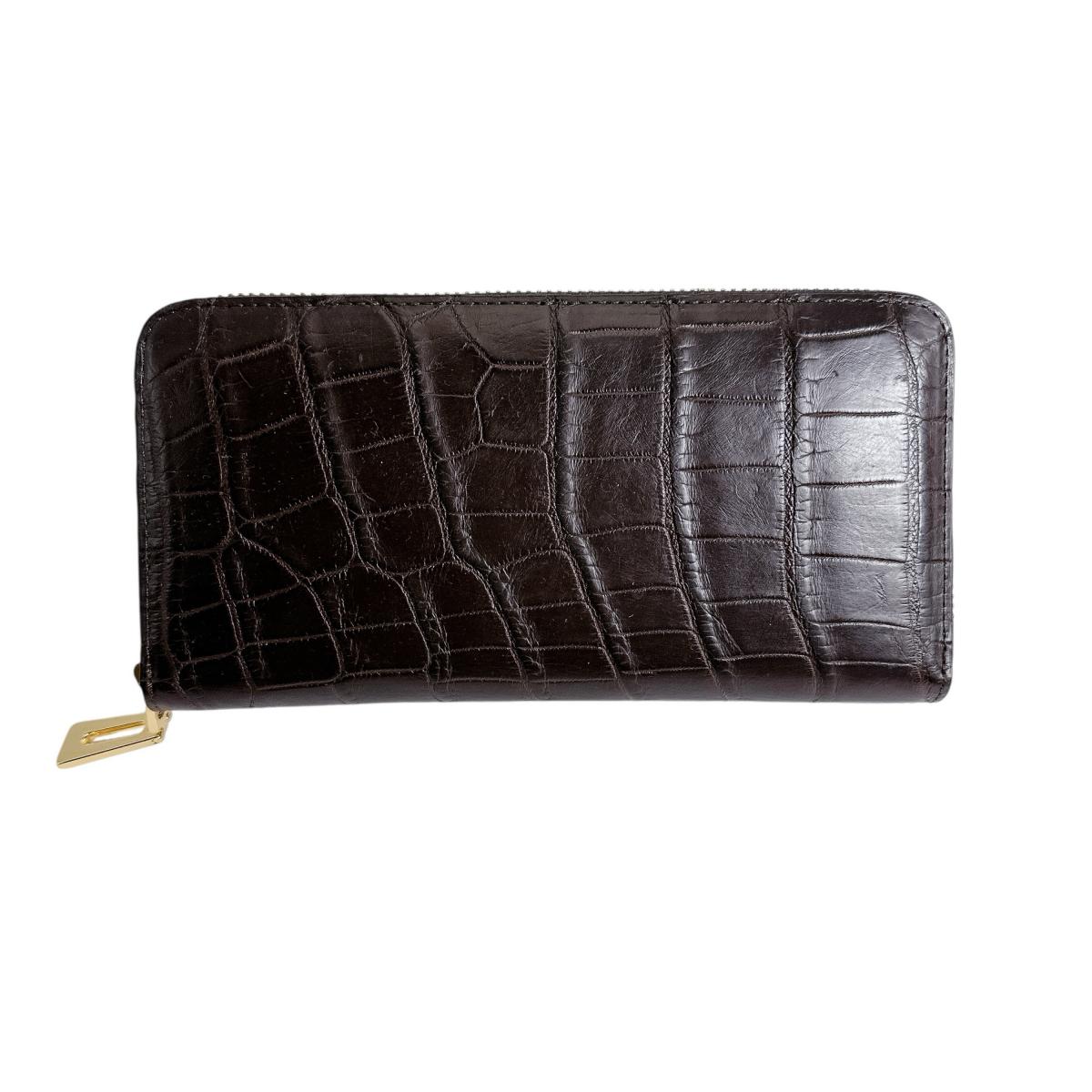 クロコダイル CROCODILE 長財布 ラウンドファスナー マット 外ポケット付 クロコダイル 52658 ニコチン 【H】