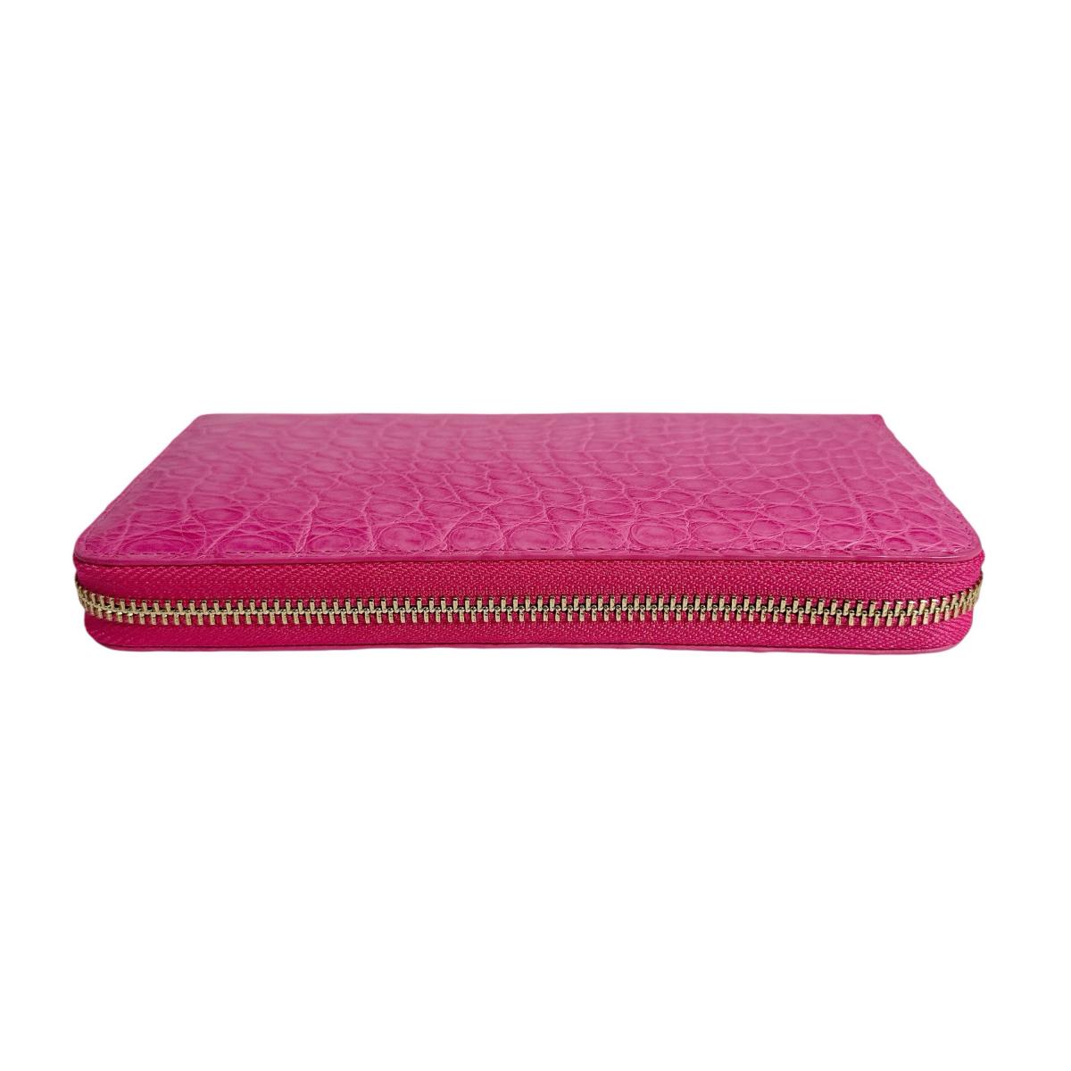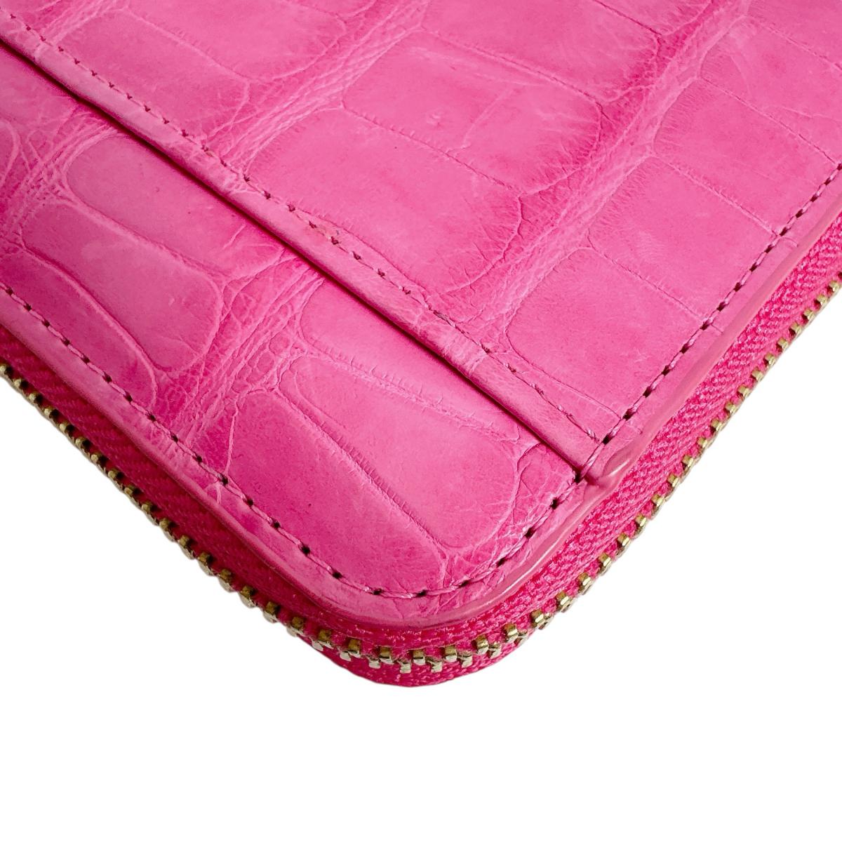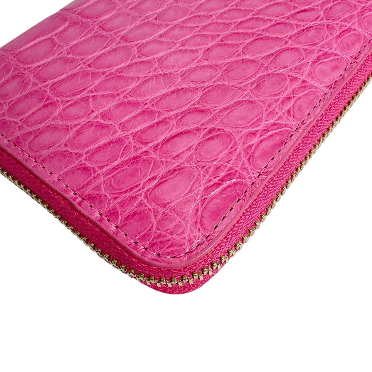 クロコダイル CROCODILE 長財布 小銭入付ラウンドファスナー マット 外ポケット付き クロコダイル 52658 ピンク 【SS】 【中古】