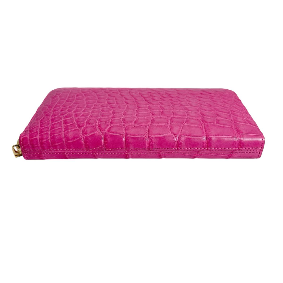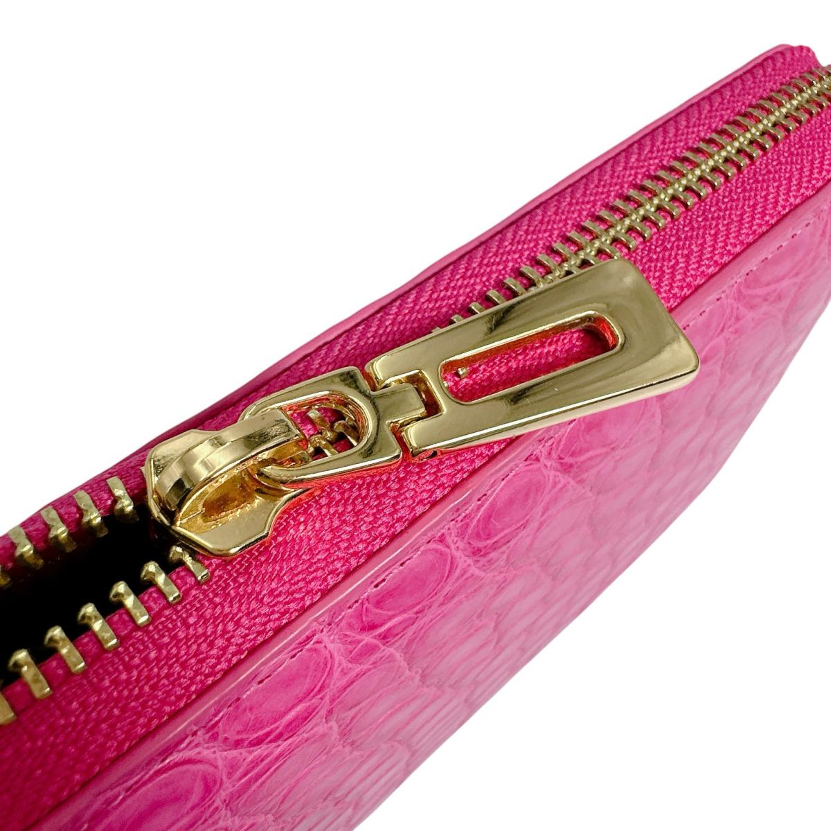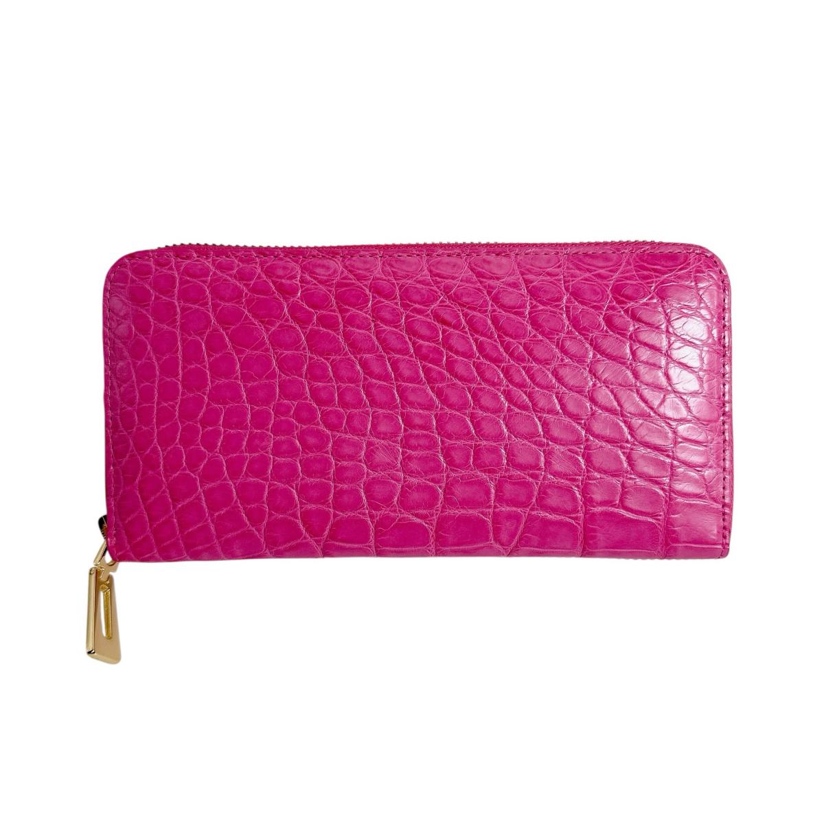 クロコダイル CROCODILE 長財布 小銭入付ラウンドファスナー マット 外ポケット付き クロコダイル 52658 ピンク 【SS】 【中古】