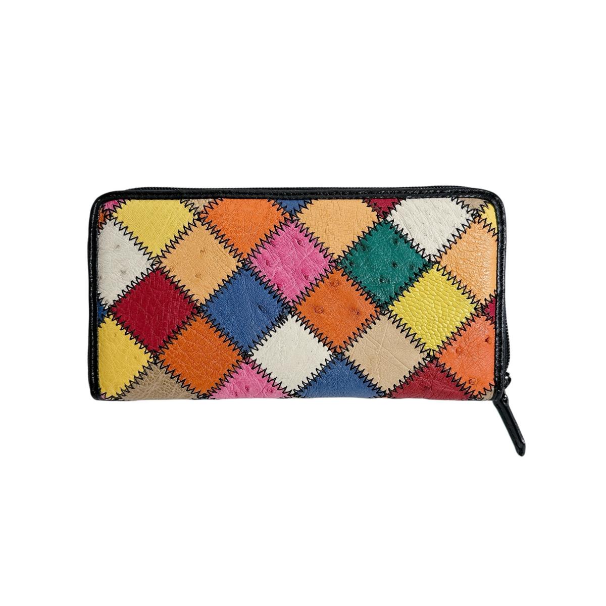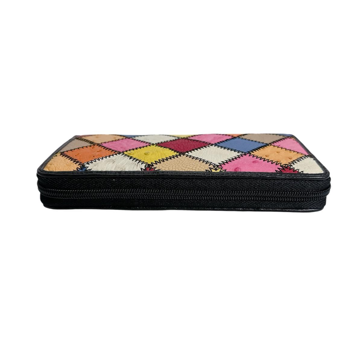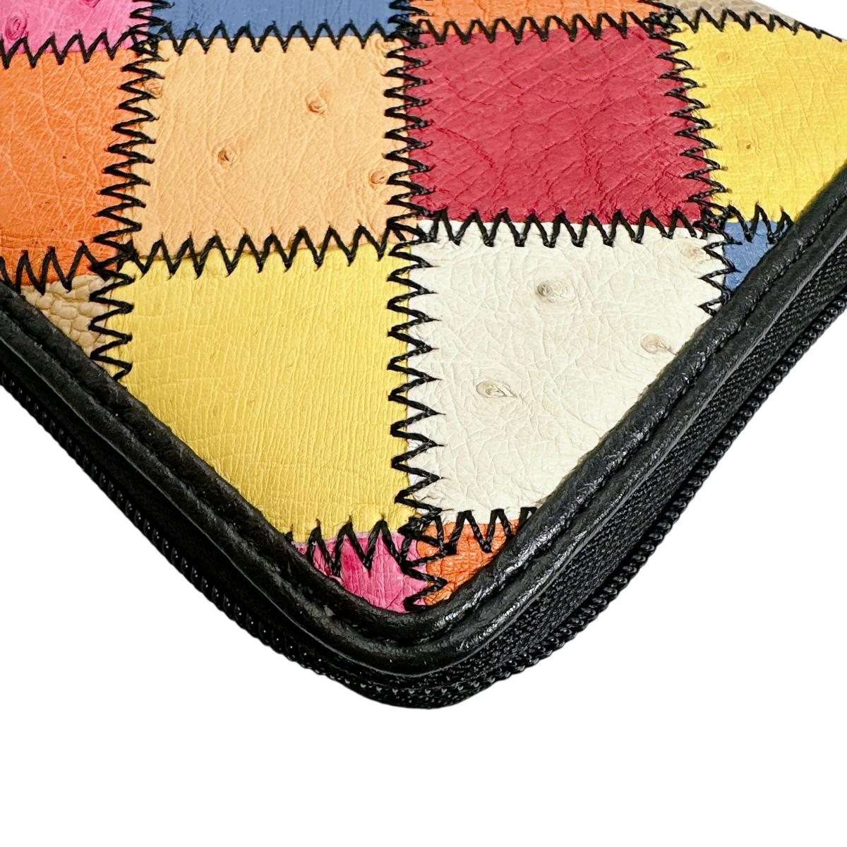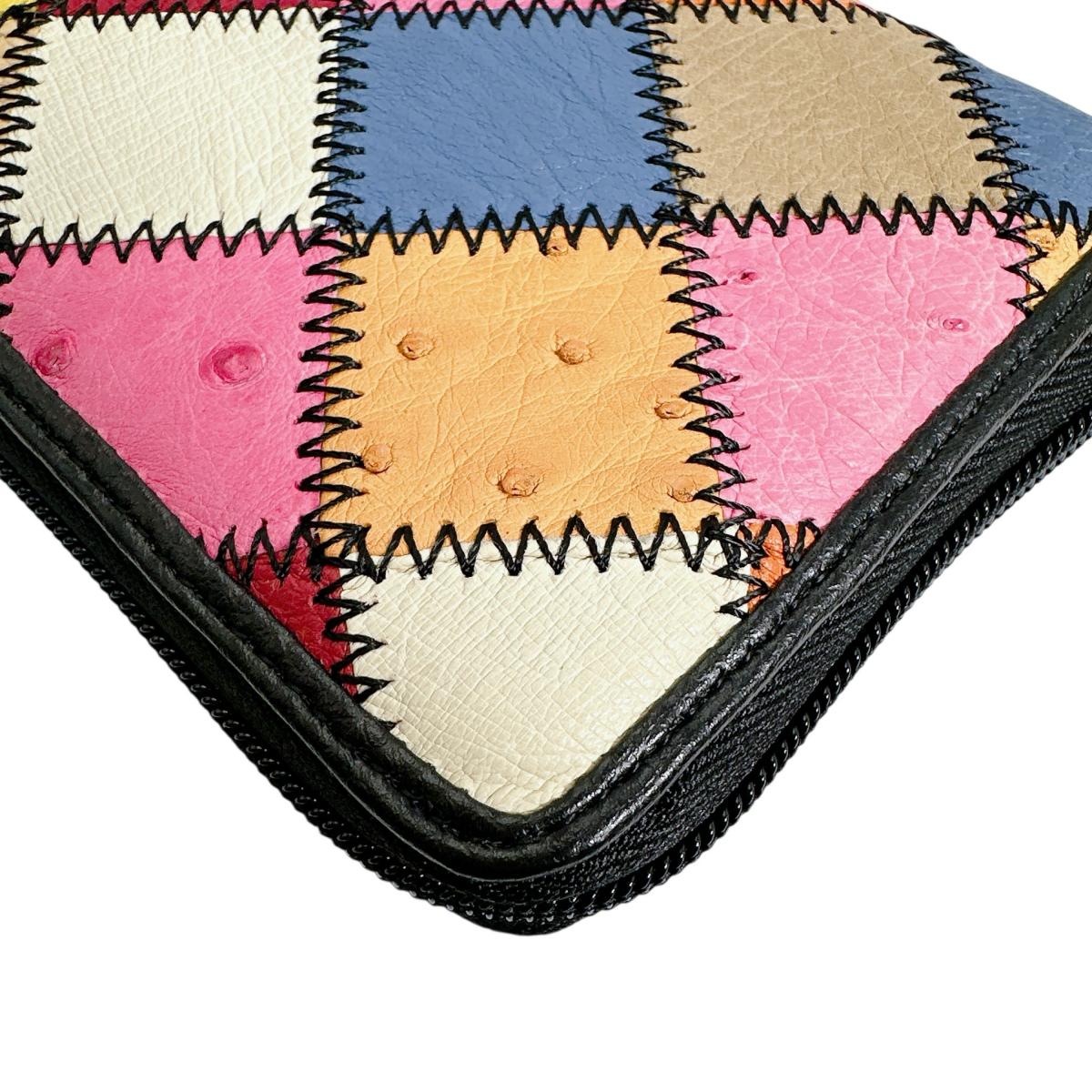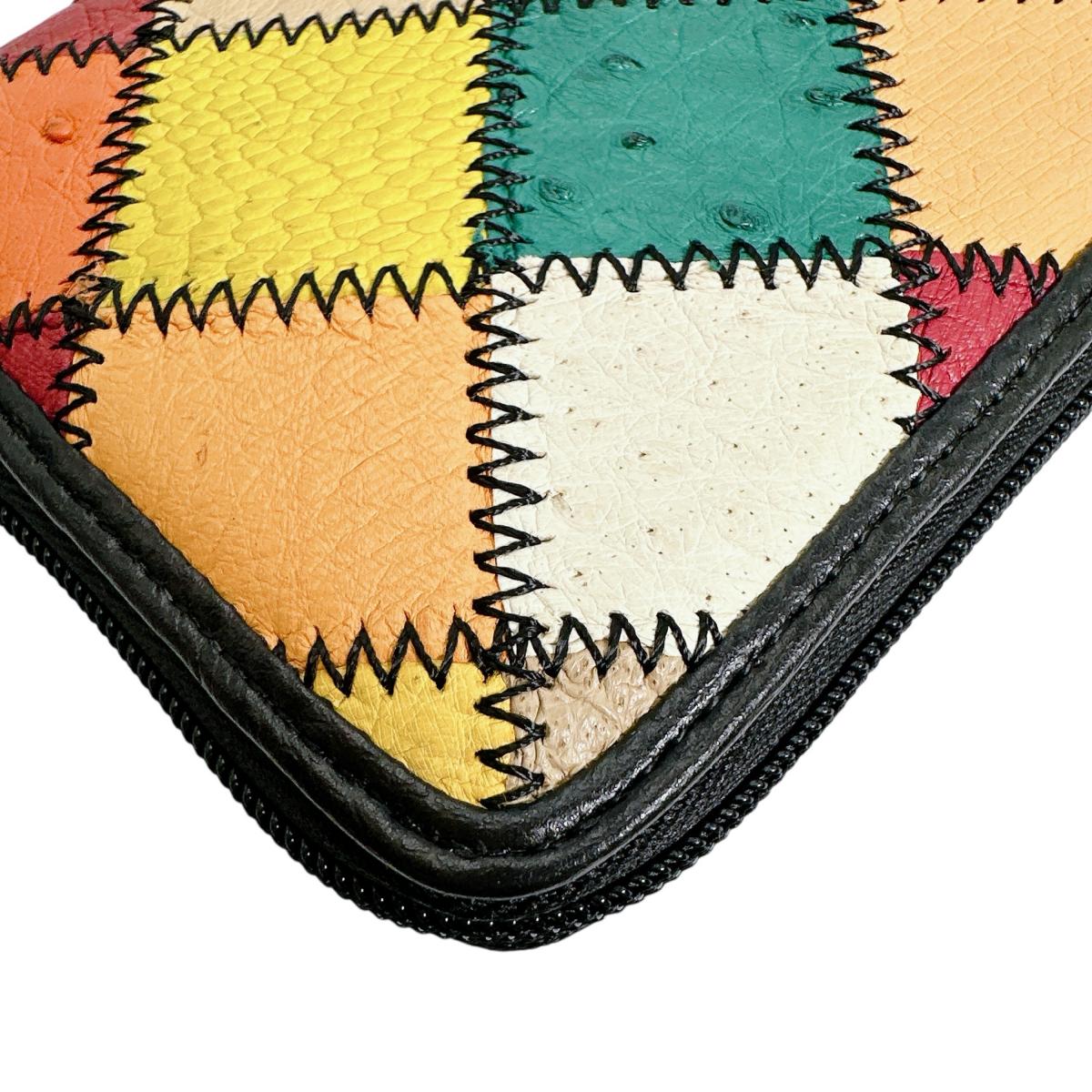 オーストリッチ ostrich 長財布 ラウンドファスナー 黒ステッチ パッチワーク オーストリッチ LB-5055 マルチカラー 【SS】
