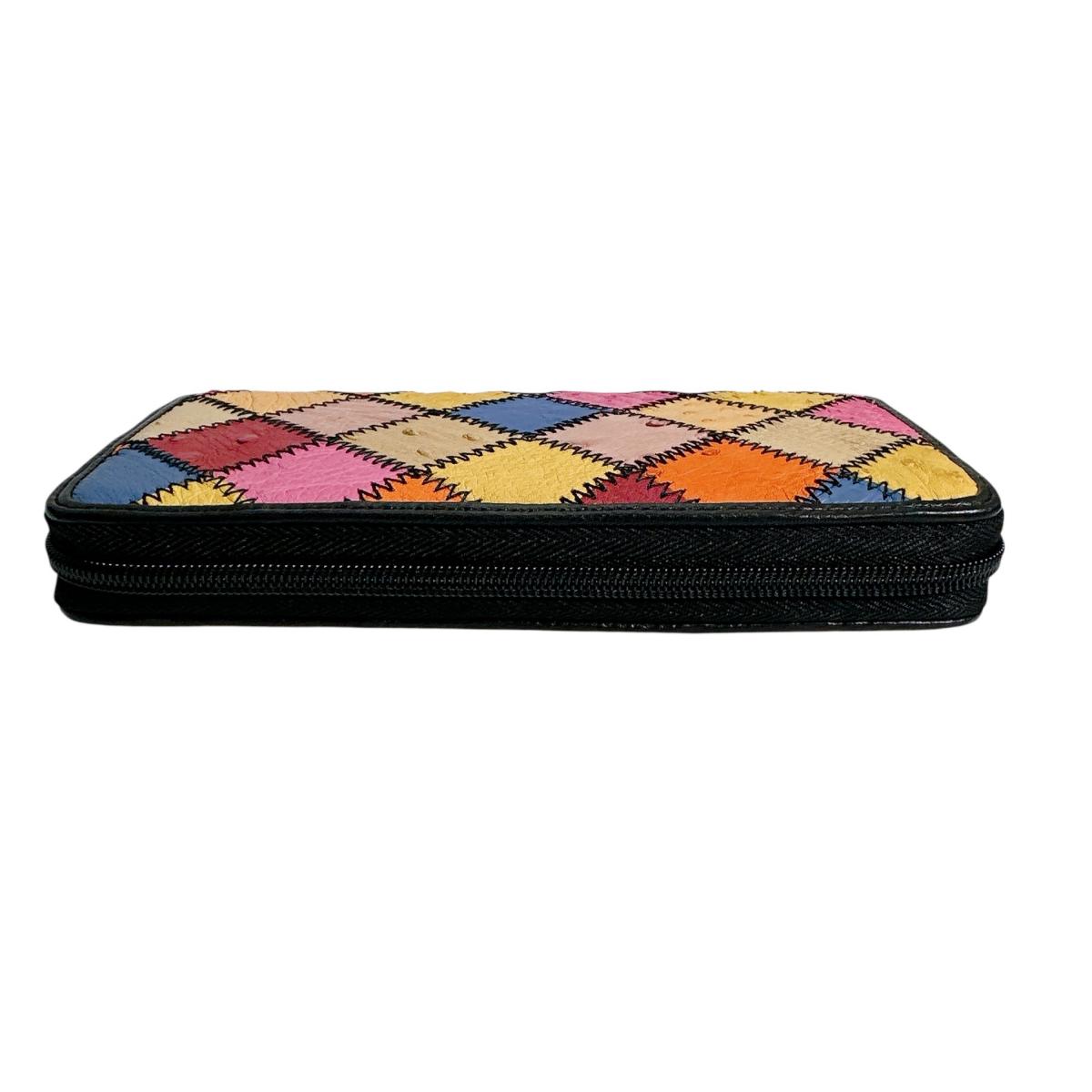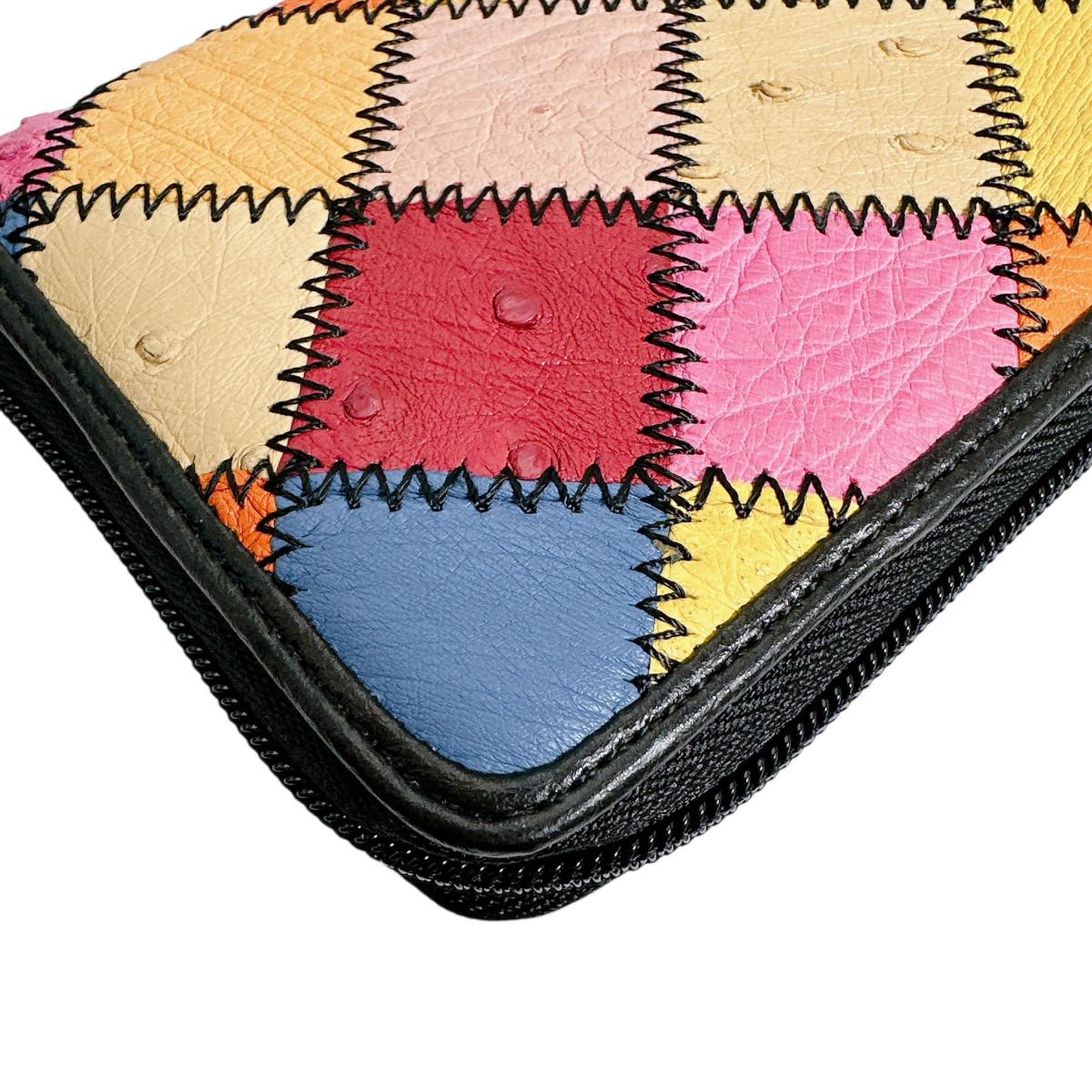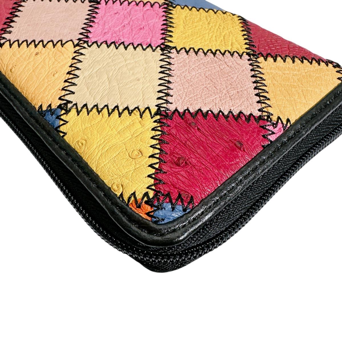 オーストリッチ ostrich 長財布 ラウンドファスナー 黒ステッチ パッチワーク オーストリッチ LB-5055 マルチカラー 【SS】 【中古】