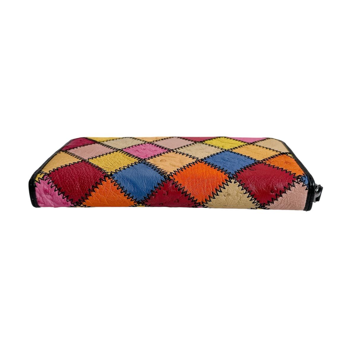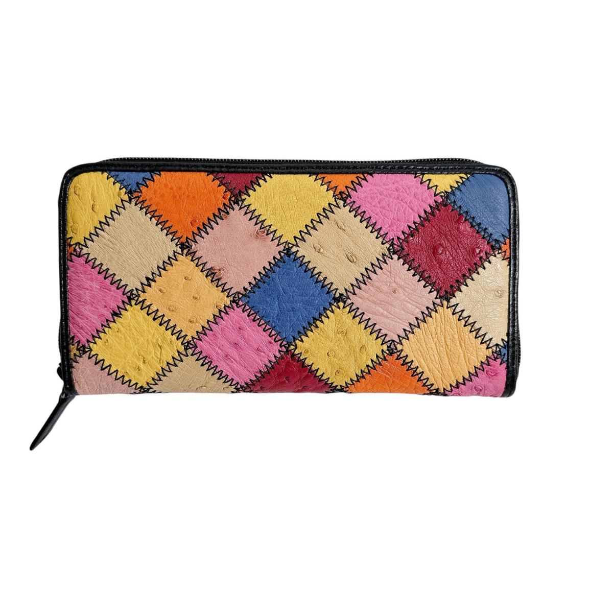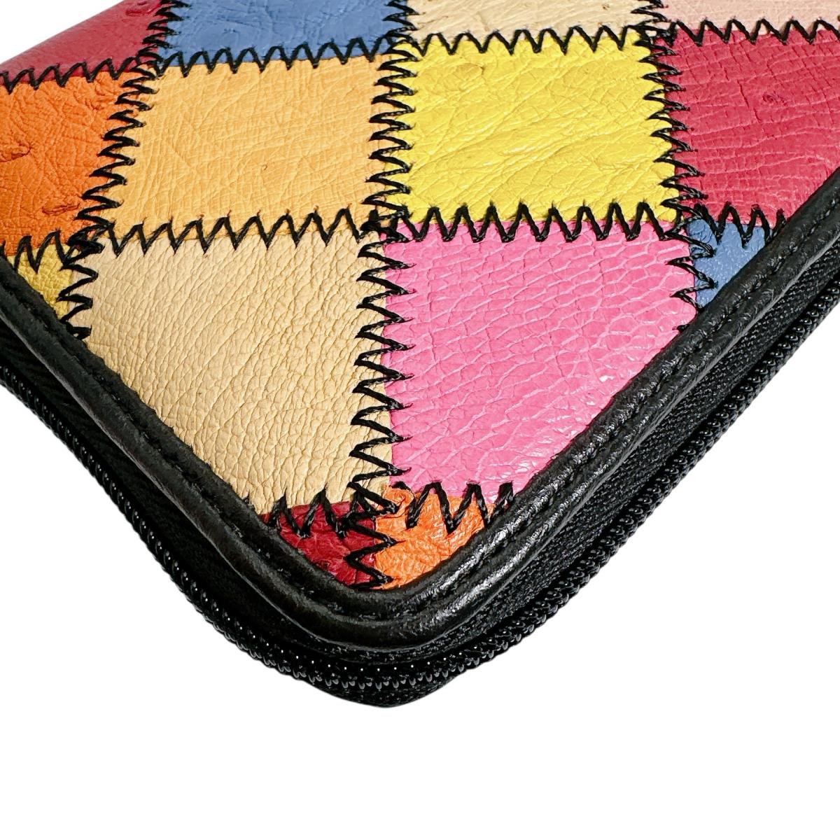 オーストリッチ ostrich 長財布 ラウンドファスナー 黒ステッチ パッチワーク オーストリッチ LB-5055 マルチカラー 【SS】 【中古】