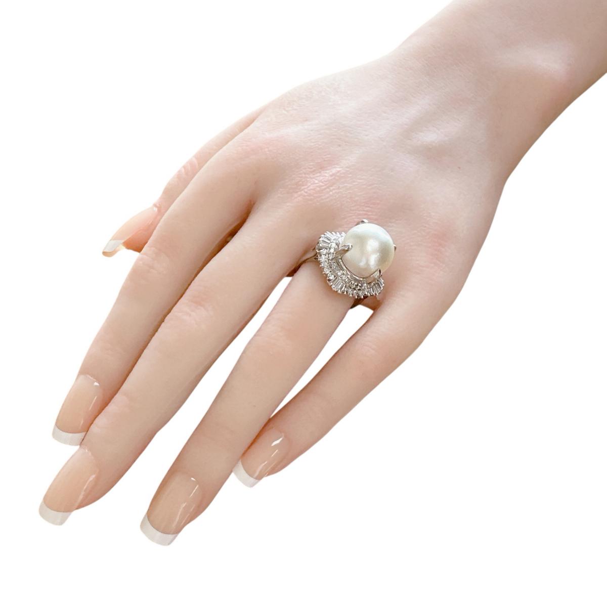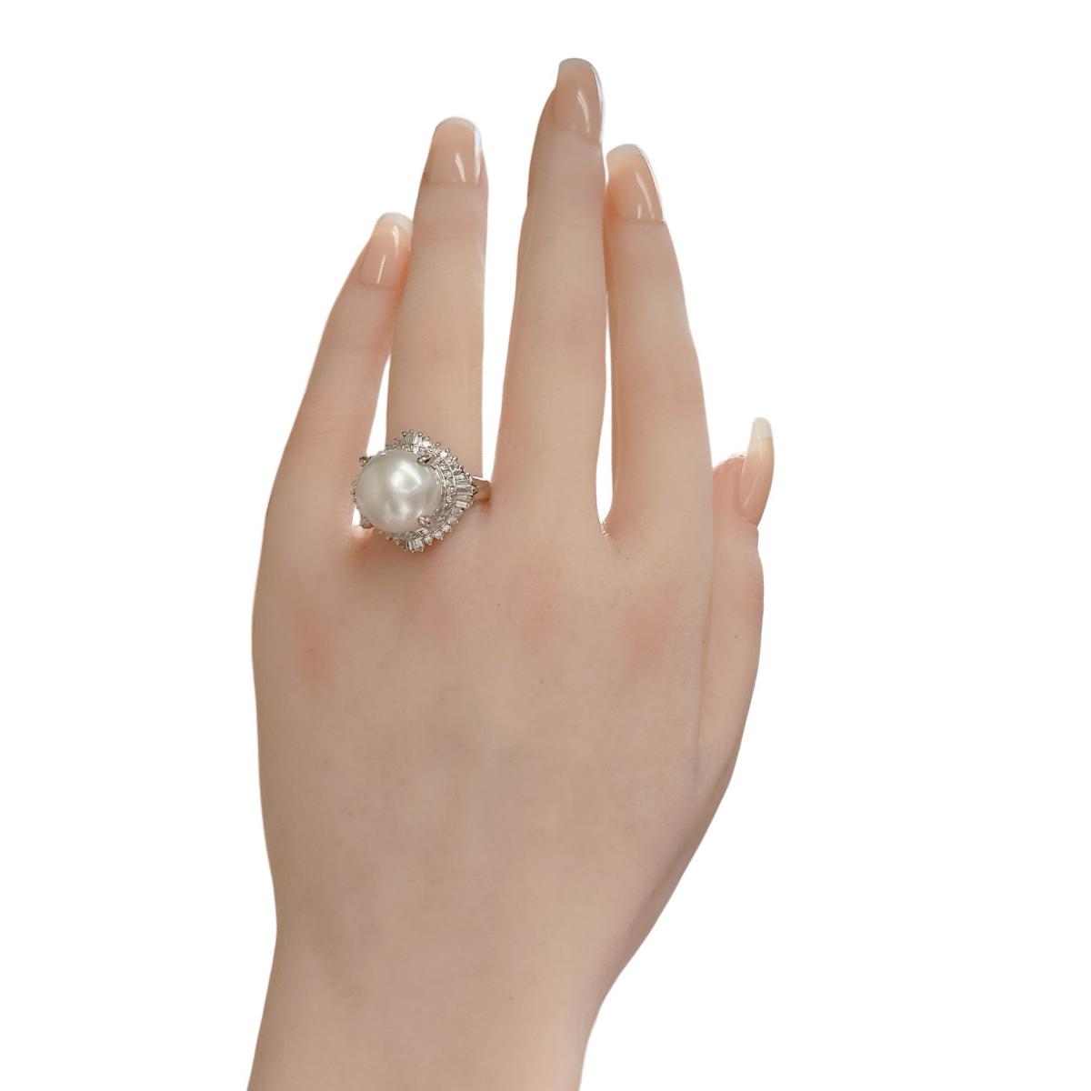リング・指輪 南洋真珠 真珠 シロチョウ養殖 Pt900プラチナ XQ8193 シルバー 【SS】 【中古】